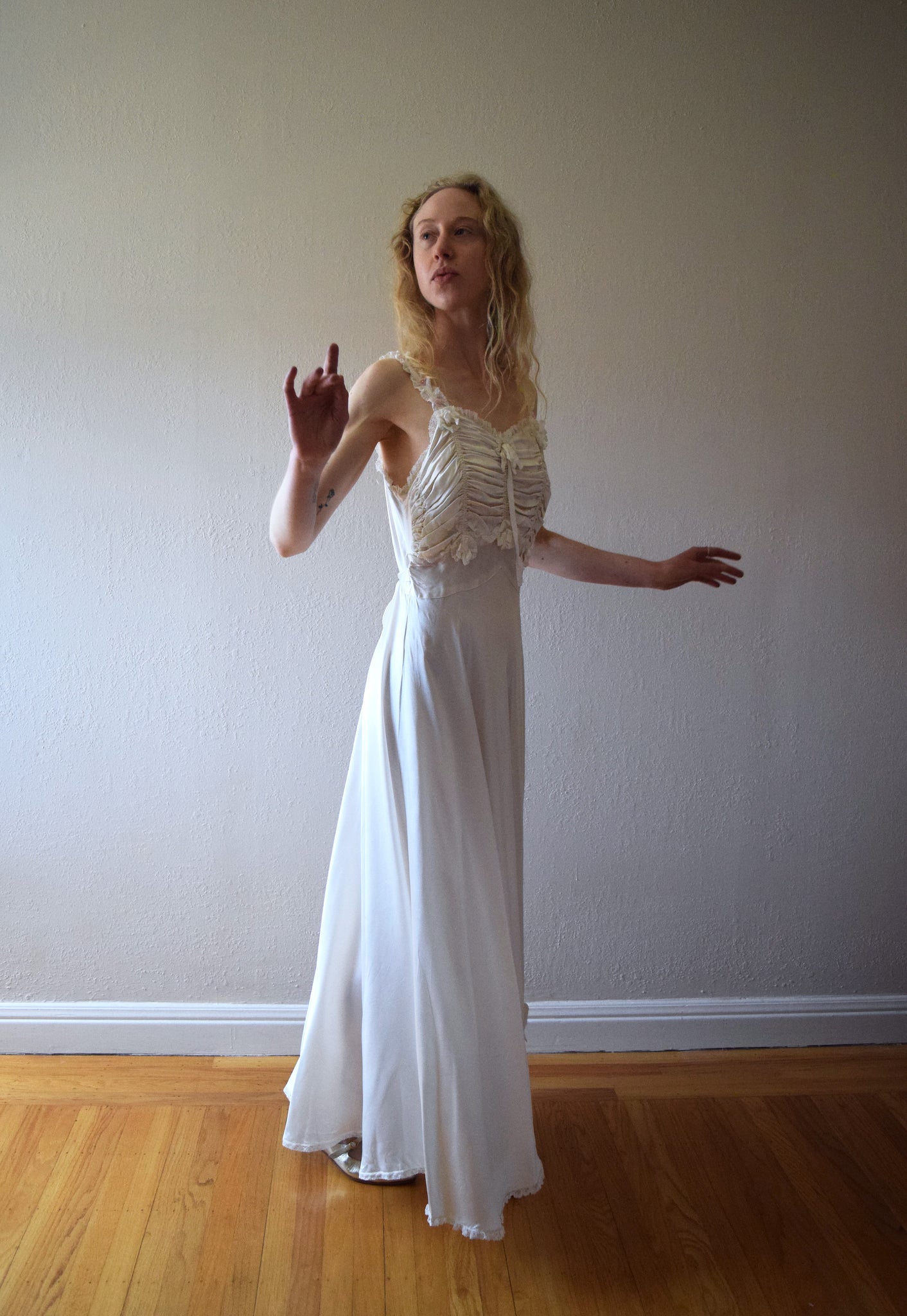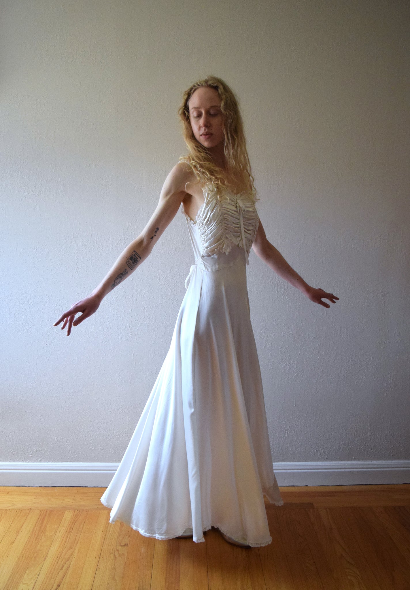 1930s satin wedding dress . vintage 30s bridal gown . size small to s/m
