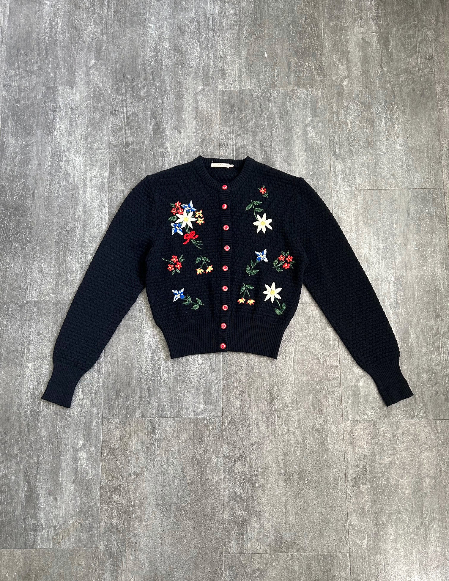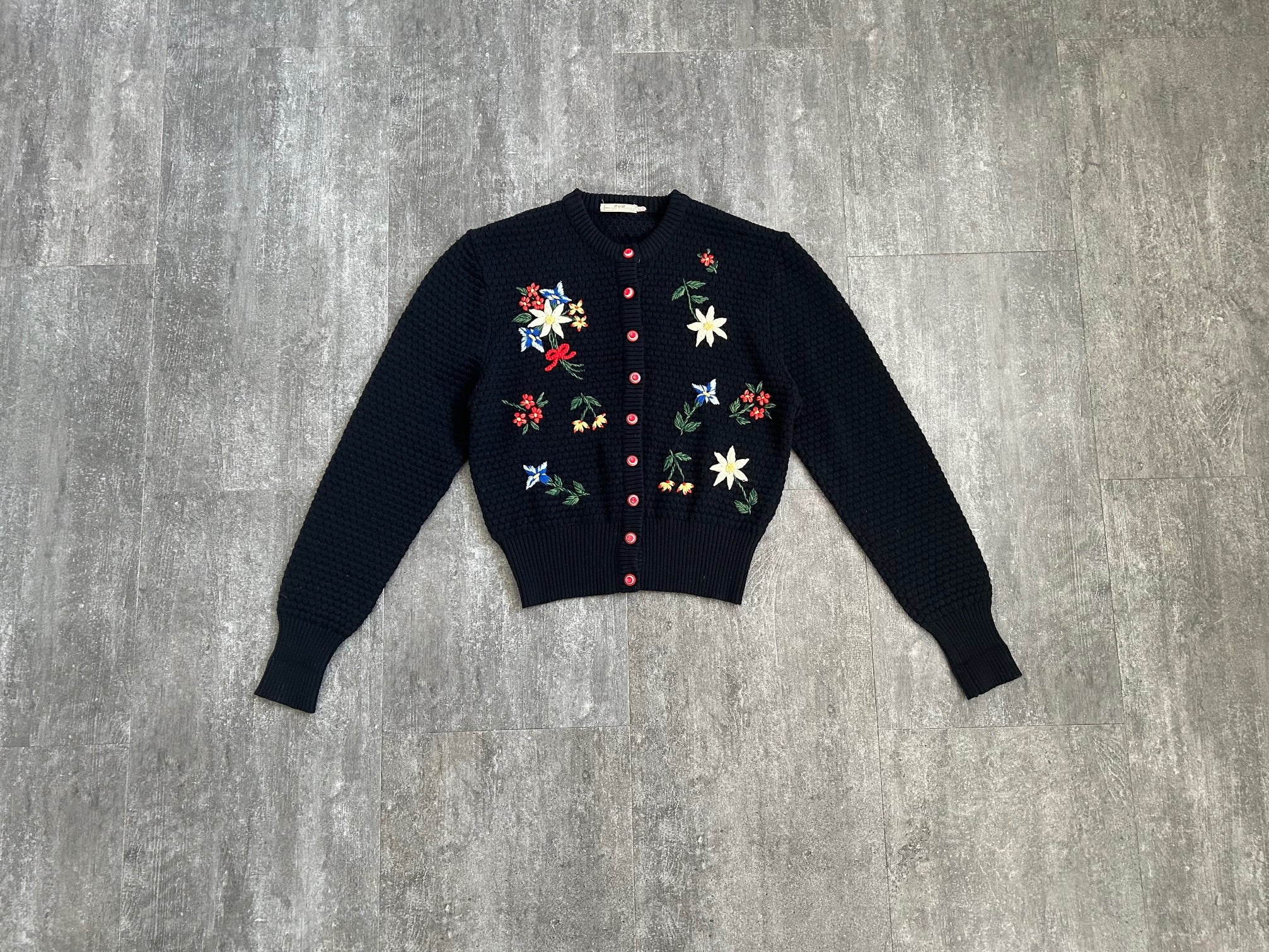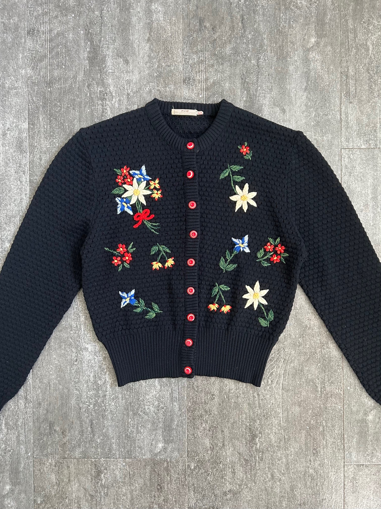 1940s 1950s vintage cardigan . floral embroidery sweater . size small to m/l